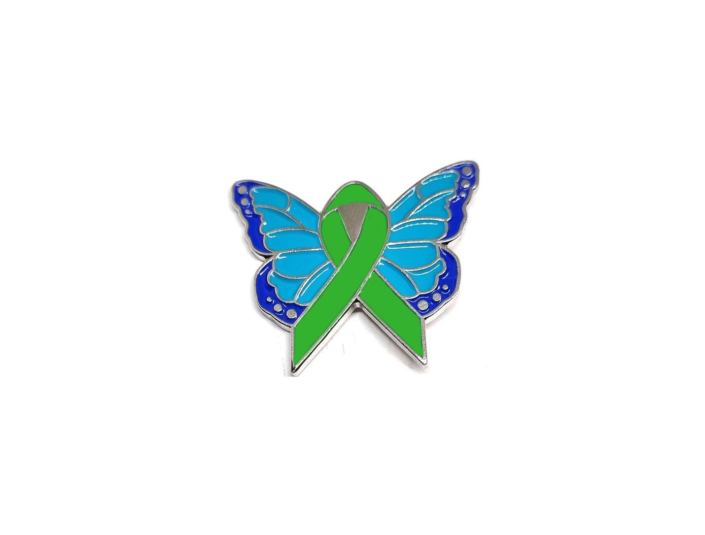Symbolizing transformation and environmental rebirth, the Butterfly Green Ribbon Pin is perfect for green campaigns with a theme of change. Featuring a delicate butterfly perched on a green ribbon, this pin adds an artistic and symbolic flair to awareness accessories.