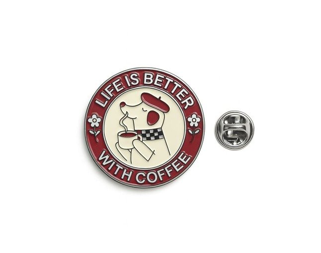 Retailers love how well this pin performs in cafés, bookstores, artisan shops, novelty stores, gift boutiques, and online lifestyle shops — especially as part of coffee-themed gift sets or café merchandise.