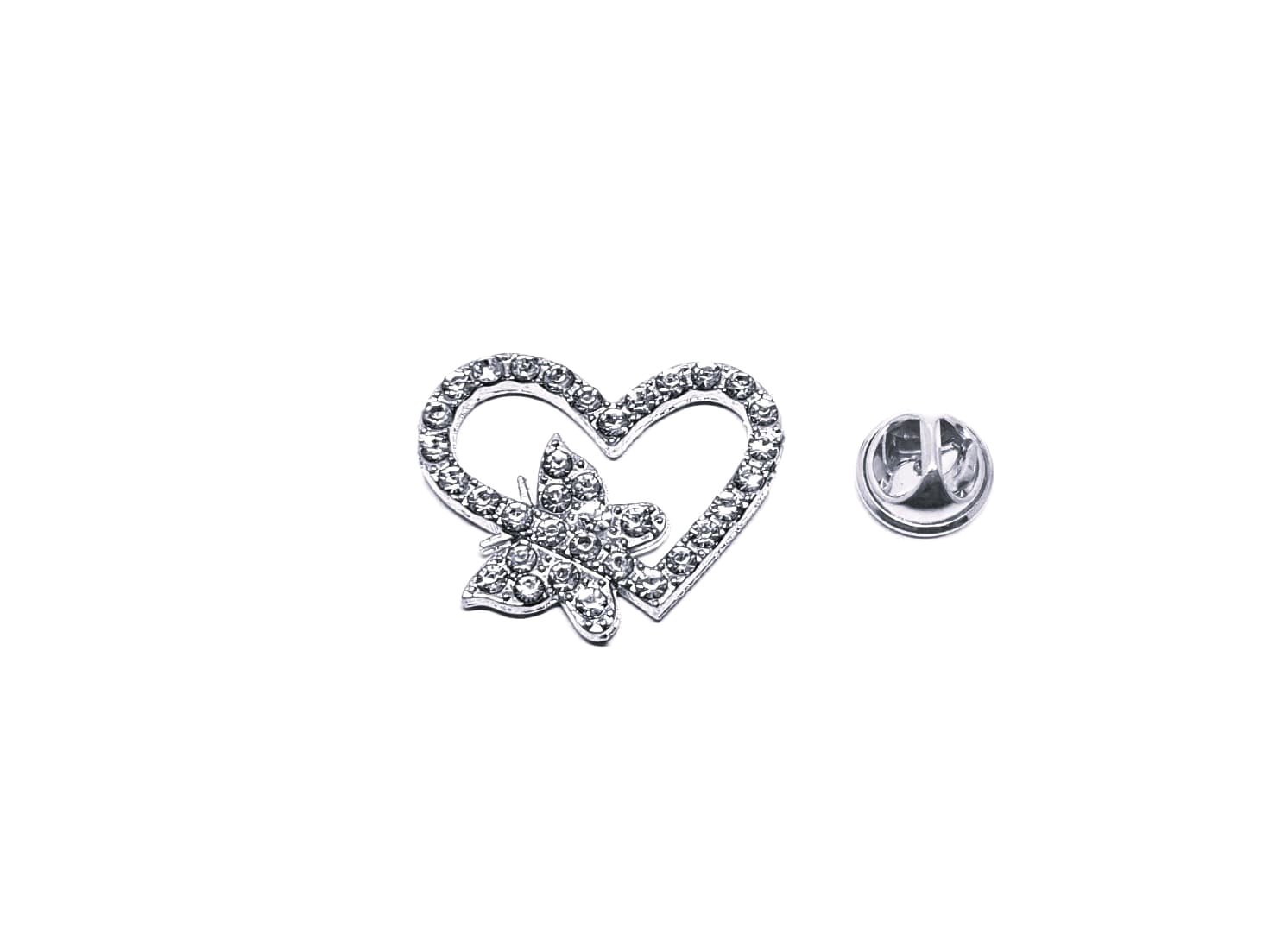 Rhinestone Studded Butterfly-Heart Lapel Pin